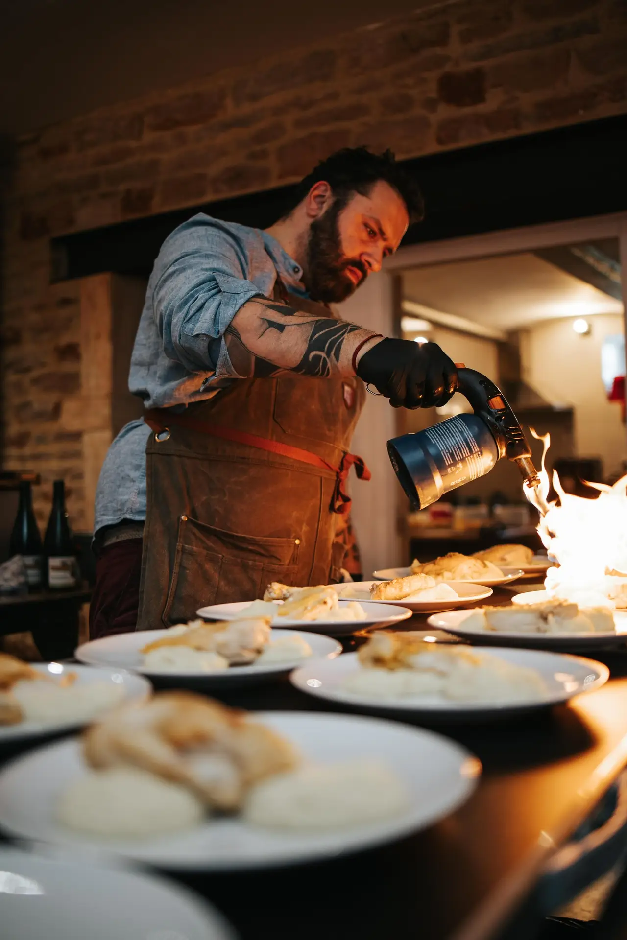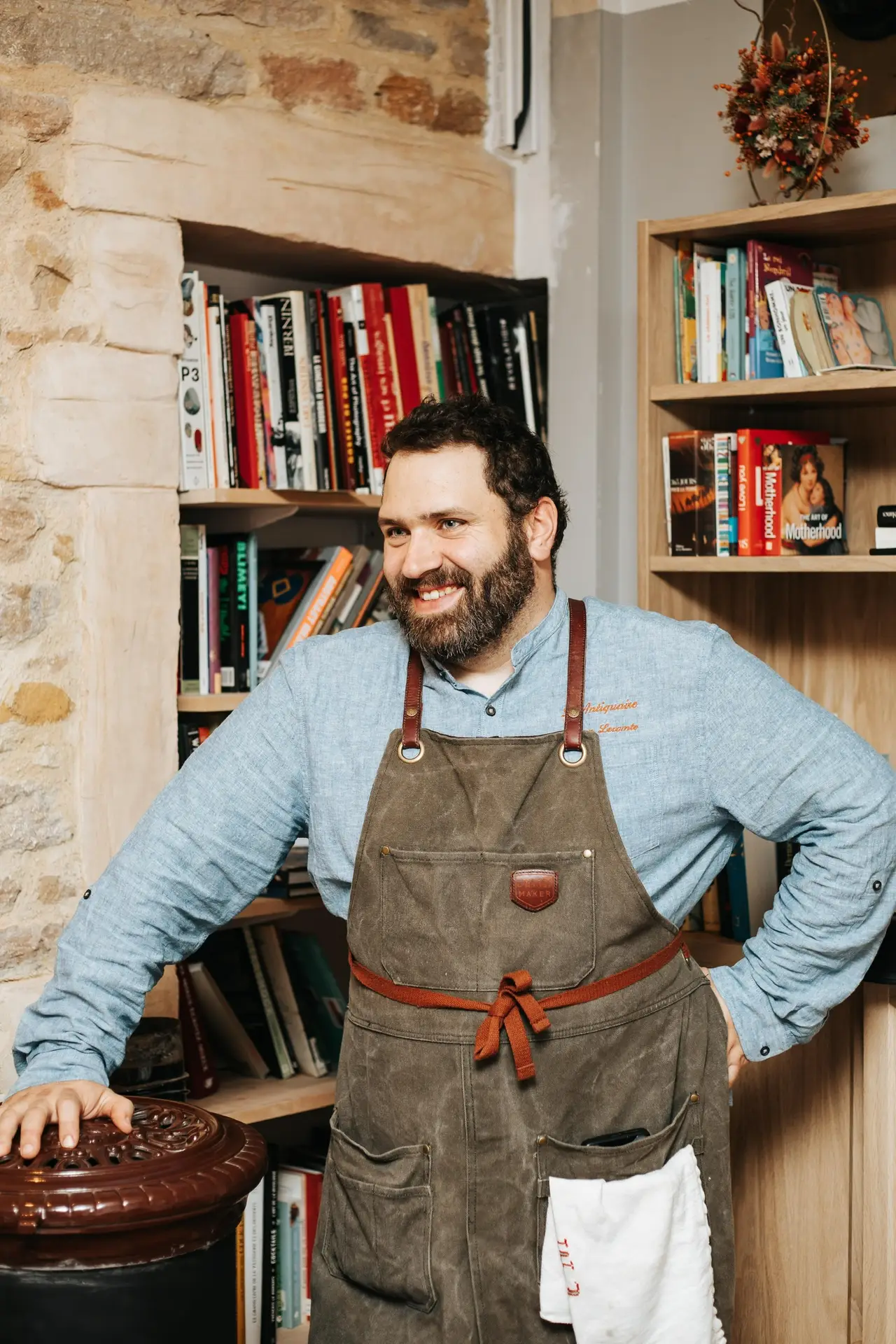 Ses braseros, ses jus longs, ses cuissons justes. À table, il raconte ce qu'il y a dans votre assiette, d'où ça vient, comment il l'a travaillé. Il est généreux, passionné, créatif.